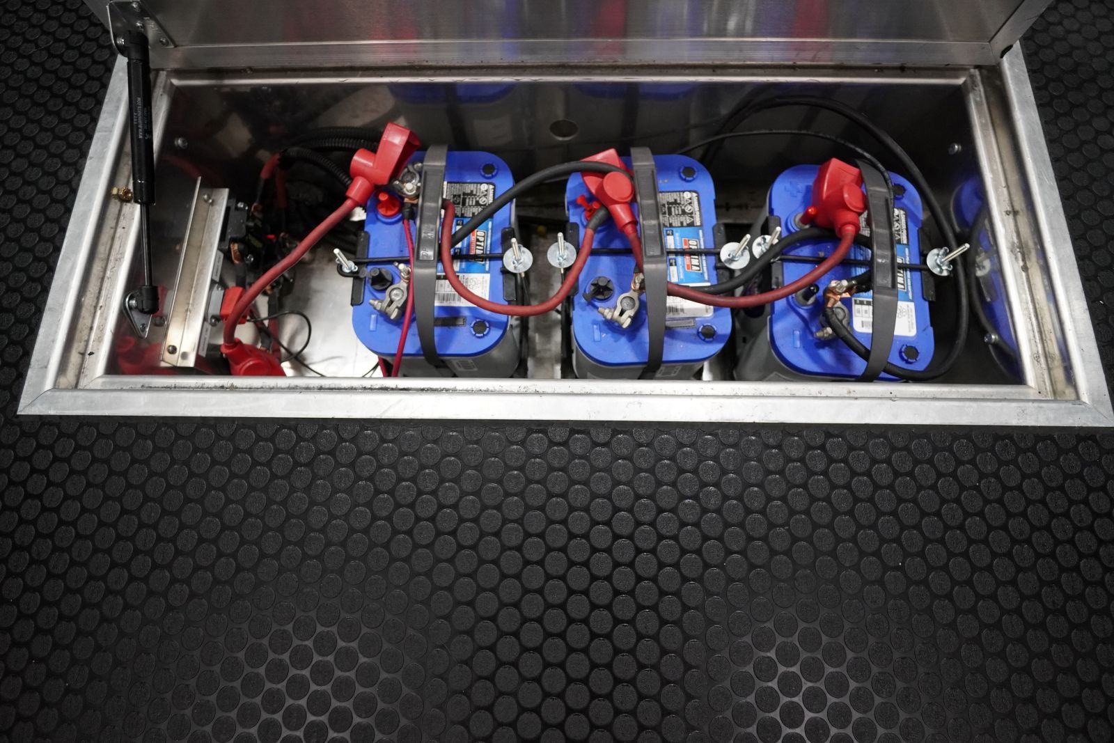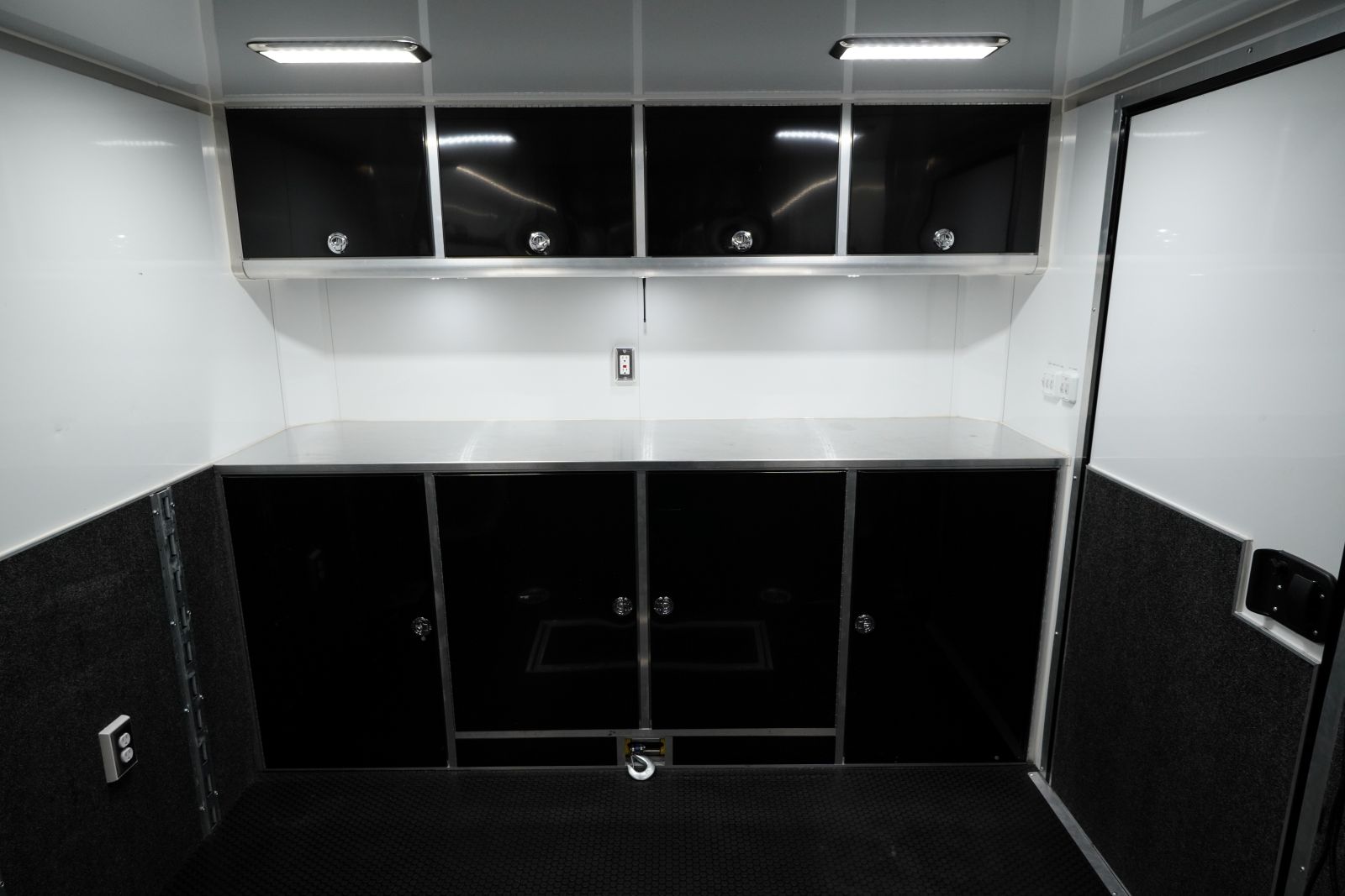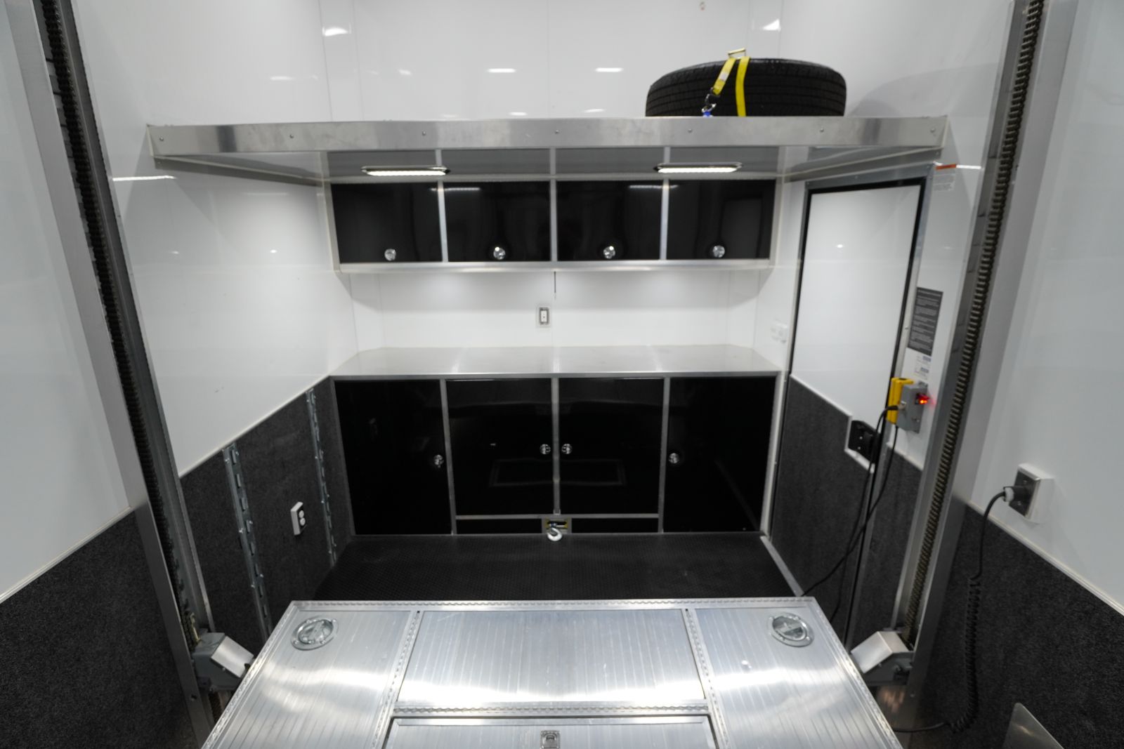 - Cabinets: Full-width, Black Aluminum Base and Upper Cabinets offer ample secure storage for tools, gear, and supplies.