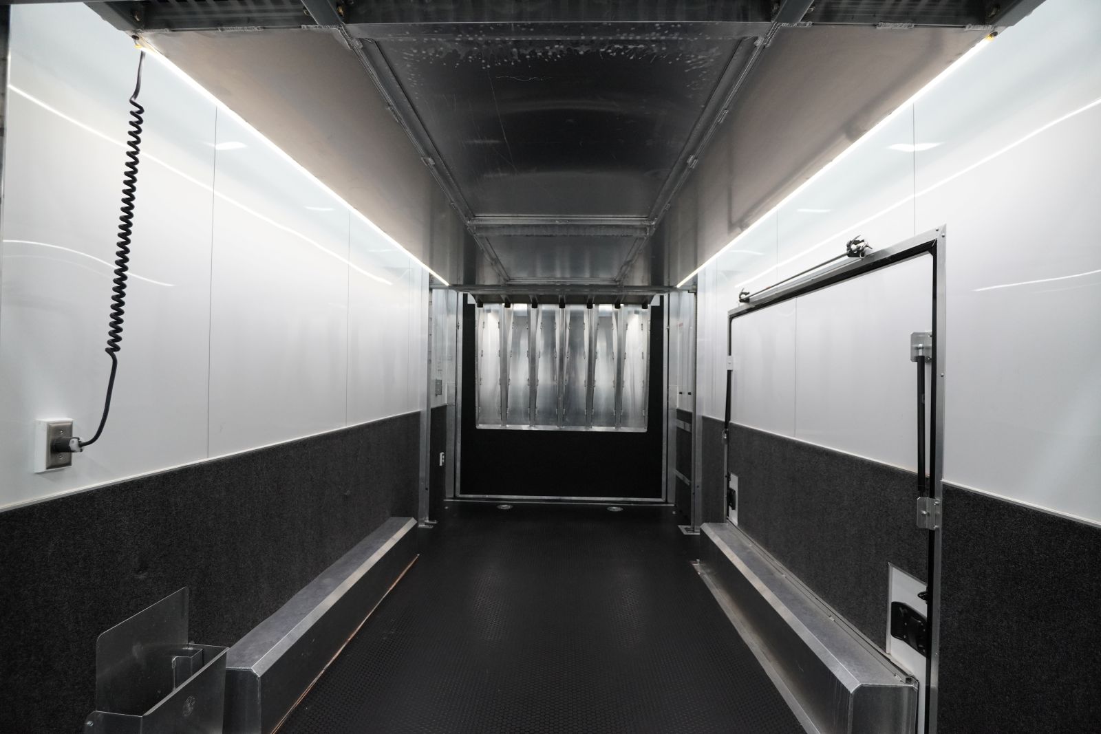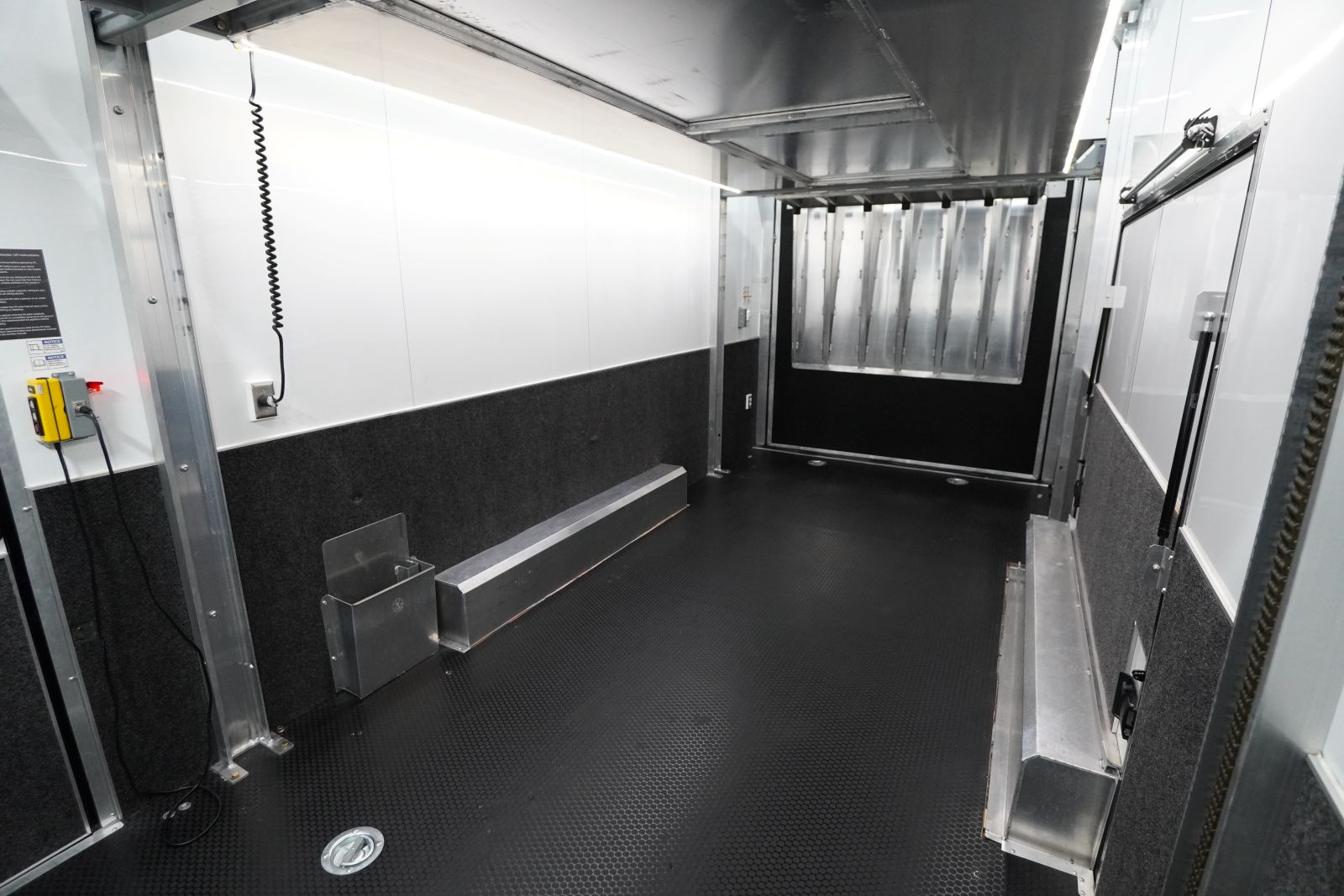 - Professional Interior Finish: The walls and ceiling are finished with Screwless Aluminum panels (often Polar White) and Black Cove molding for a clean, professional look that is easy to maintain.