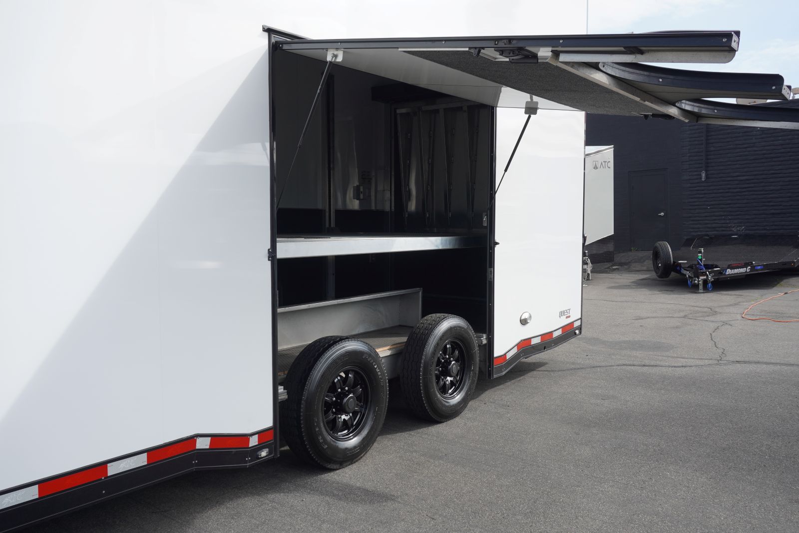 - Ramp System: Heavy-duty Premium Rear Ramp Door (rated for a 6,000 lb. vehicle load) and a rear beavertail floor design for easy loading of low-clearance vehicles.