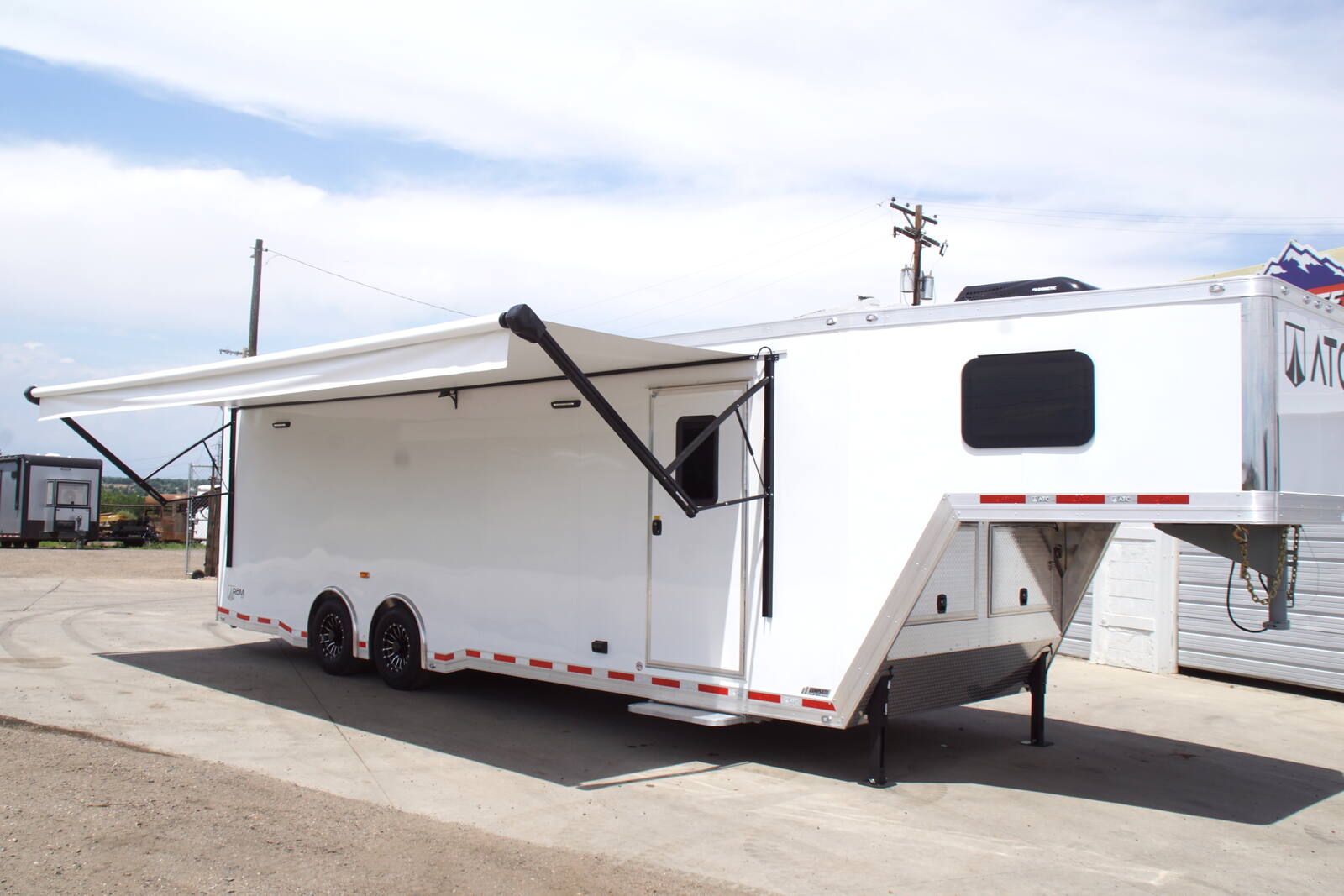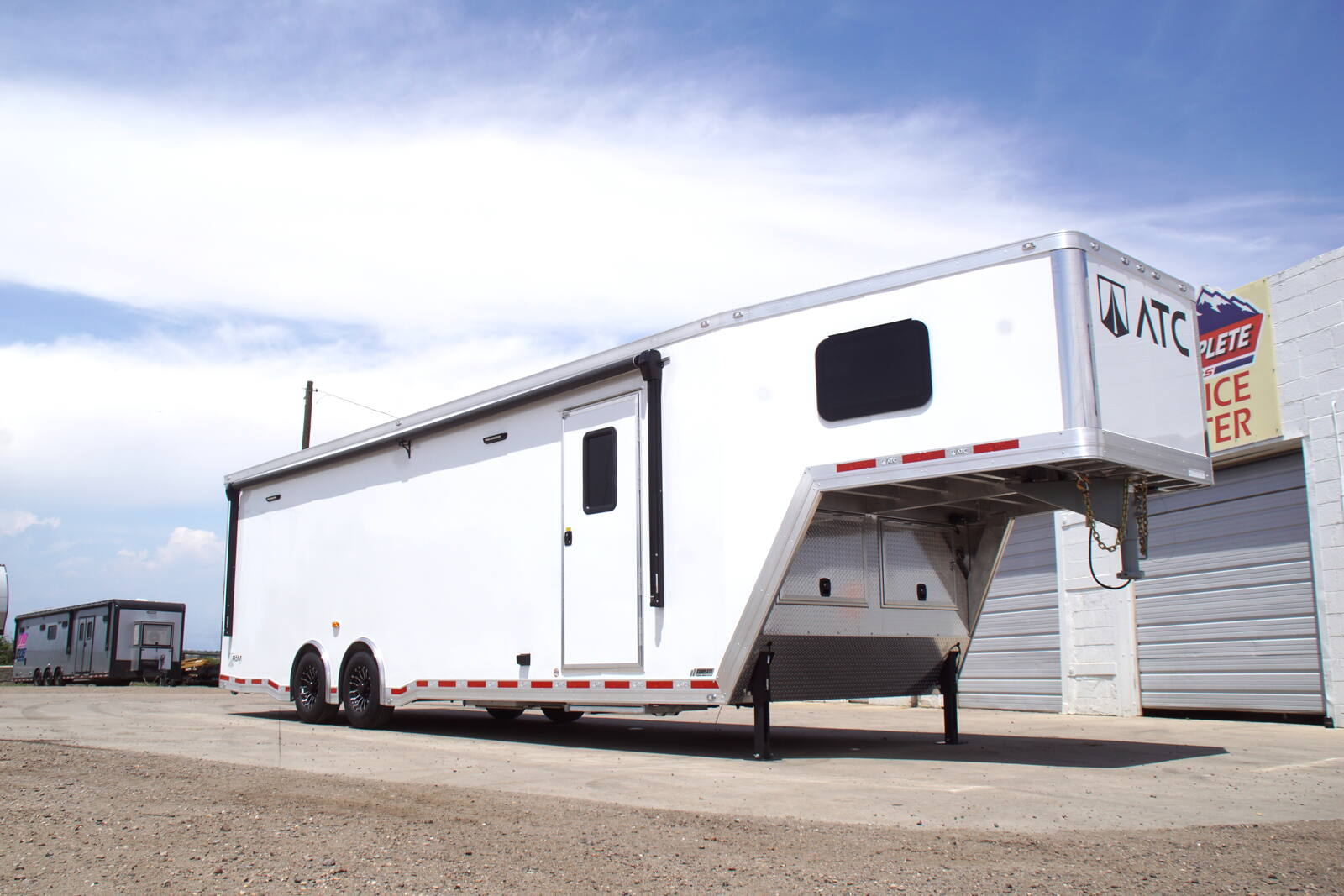 Get ready to elevate your race weekend experience with the 36' ATC Race Trailer—built to deliver comfort, functionality, and premium features wherever the road takes you. Designed for serious motorsport enthusiasts, this aluminum-framed trailer combines sleek styling with all the amenities needed for long days at the track and restful nights between heats.