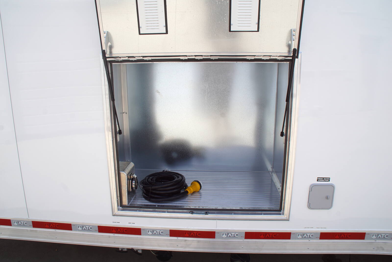 Step inside and you’ll find a fully integrated living space, complete with a full bathroom with shower, HVAC system, and dedicated sleeping area—so you can relax and recharge after a long day of racing. A kitchenette with essential appliances ensures you stay fueled up, while the generator prep kit gives you the flexibility to stay powered up, even off-grid.