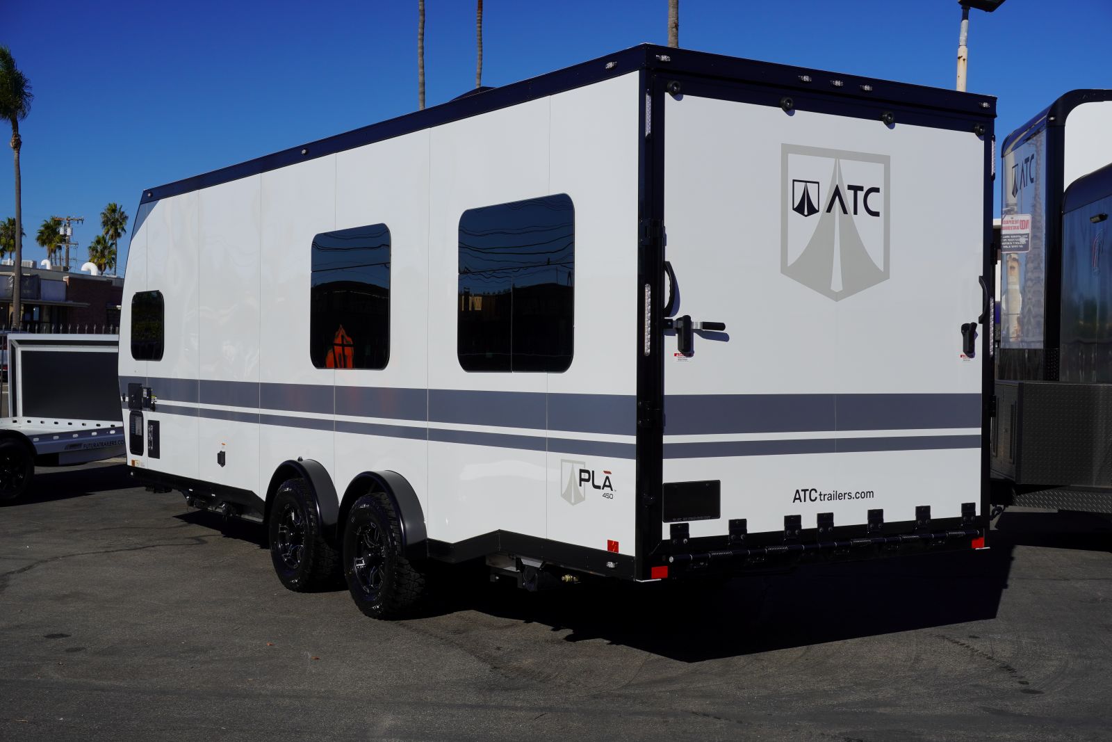 The ATC Pla 450 2415 is not just a toy hauler; it's a premium, all-aluminum recreational vehicle that offers unparalleled quality and versatility for serious adventurers. Designed to accommodate your gear and provide a luxurious living space, this unit ensures you're ready for anything, whether you're hitting the dunes, trails, or simply seeking a comfortable retreat.