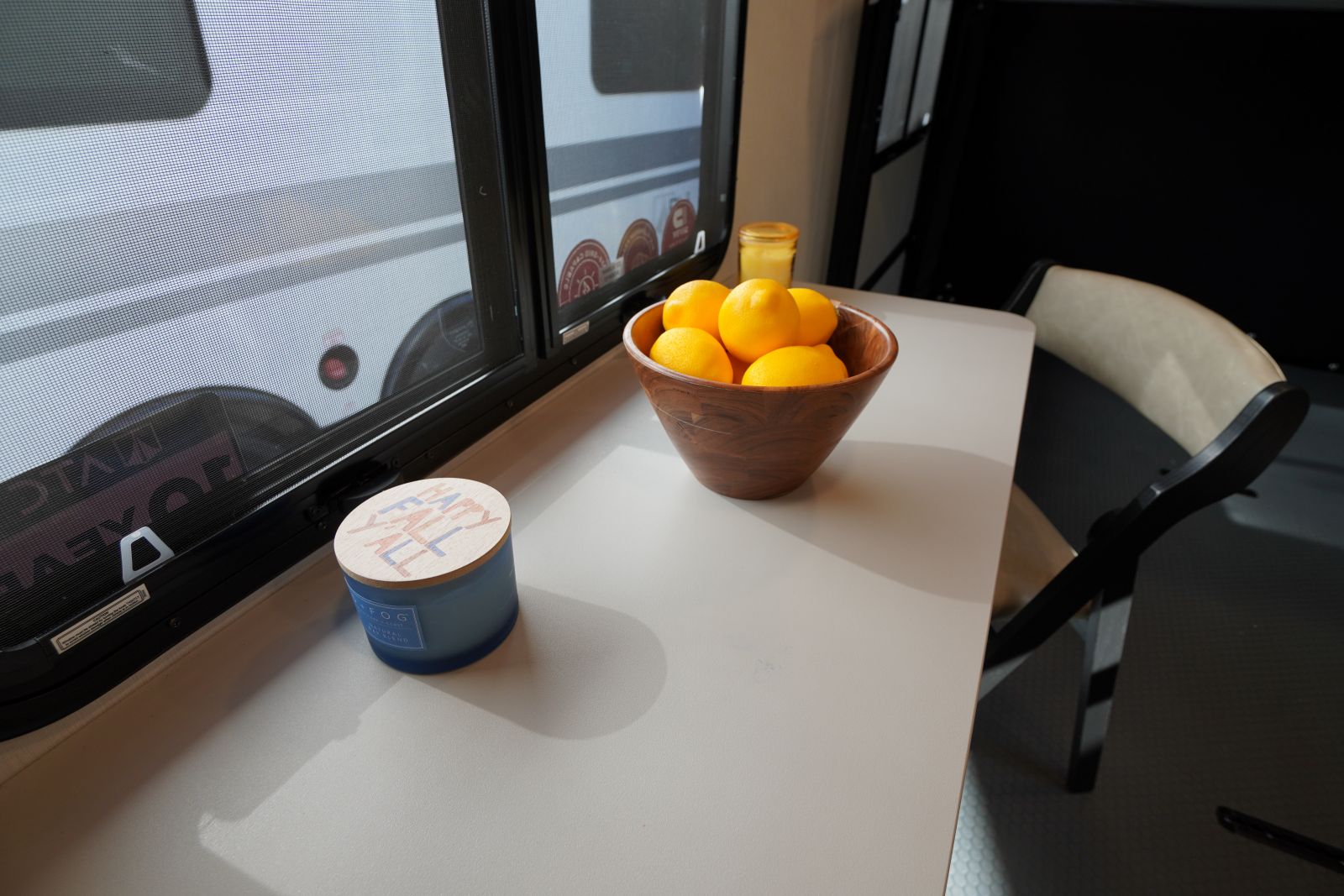 Tech & Power: Enjoy entertainment with an optional 32" HD Smart TV (12V). The standard Energy Pkg 1000 provides essential power with a Lithium Battery and Solar setup.