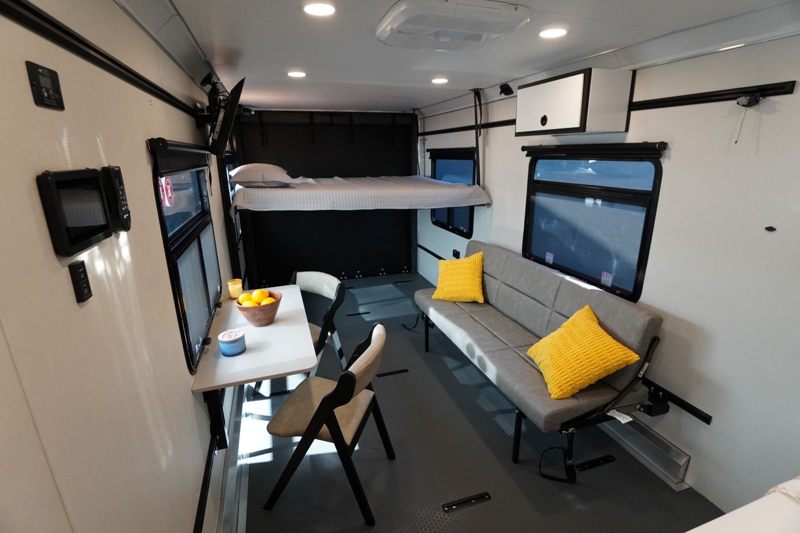The ATC Pla 450 2415 is not just a toy hauler; it's a premium, all-aluminum recreational vehicle that offers unparalleled quality and versatility for serious adventurers. Designed to accommodate your gear and provide a luxurious living space, this unit ensures you're ready for anything, whether you're hitting the dunes, trails, or simply seeking a comfortable retreat.