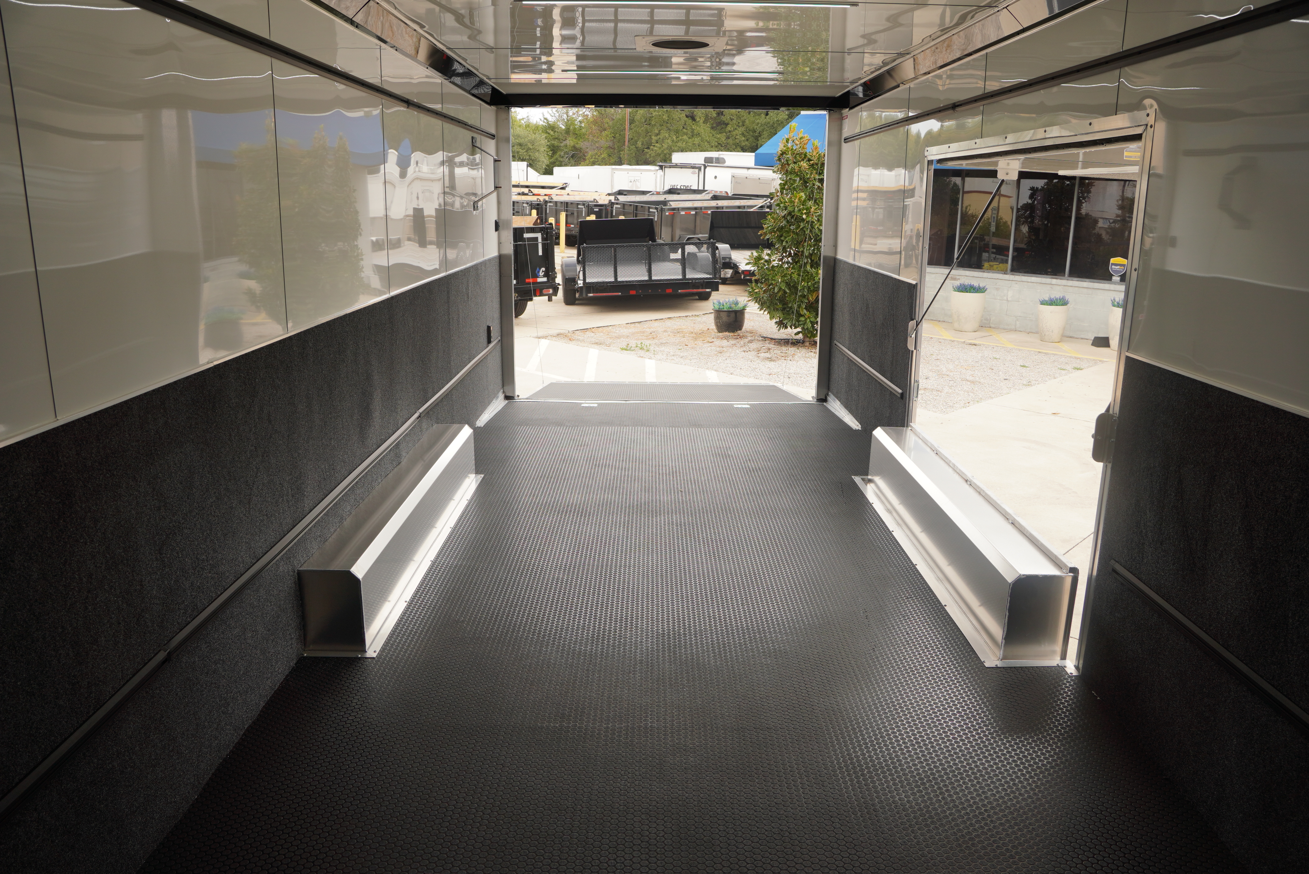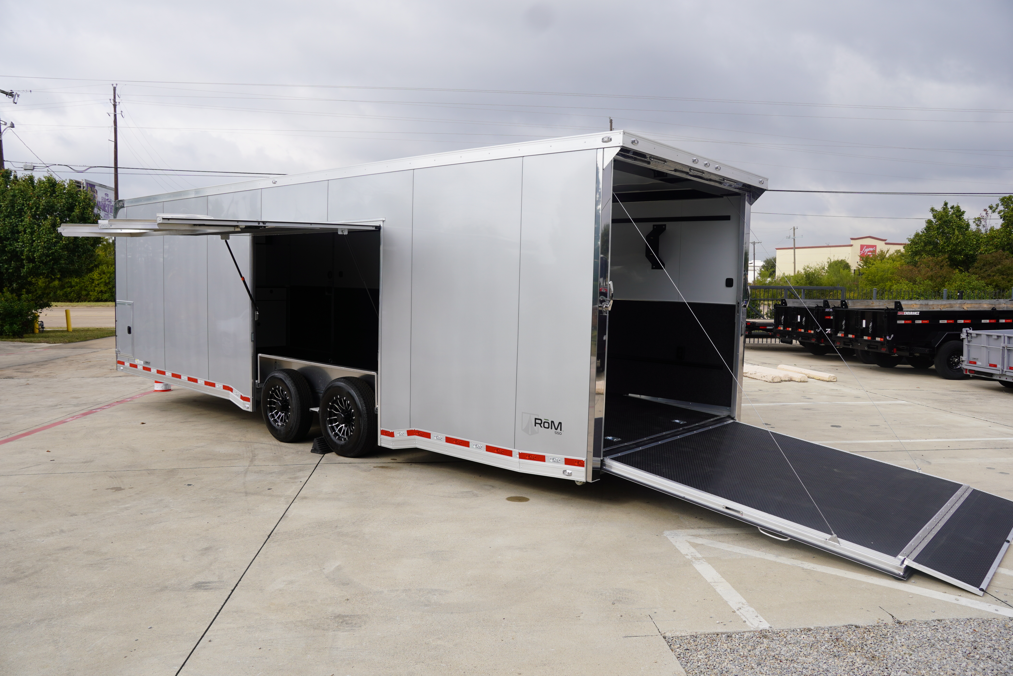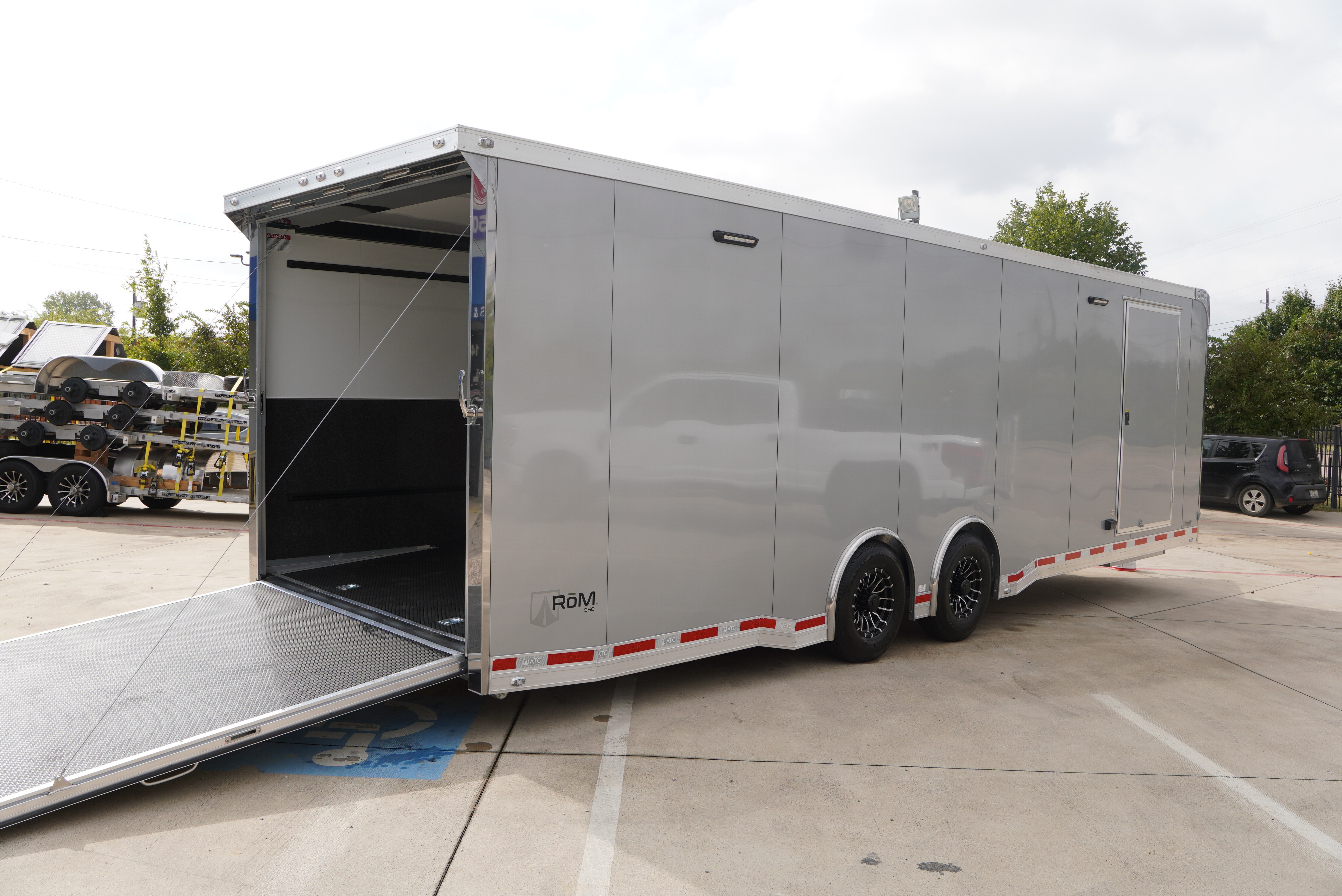 The Rōm 450 Configurable Car Hauler is ready to be the trailer you need today and tomorrow. The 450's LifeTrac allows you to add, rearrange, and remove components to customize your hauler just how you want it. The ceiling, walls and floor are all welded using state-of-the art weld tables that ensure precision alignment of all support members. The result is the ideal carriage for your racing vehicle, your classic car-show collectible or your weekend toys. Whether you're a professional racer or a classic car collector, the Rōm 450 ensures you transport your vehicles safely and efficiently.