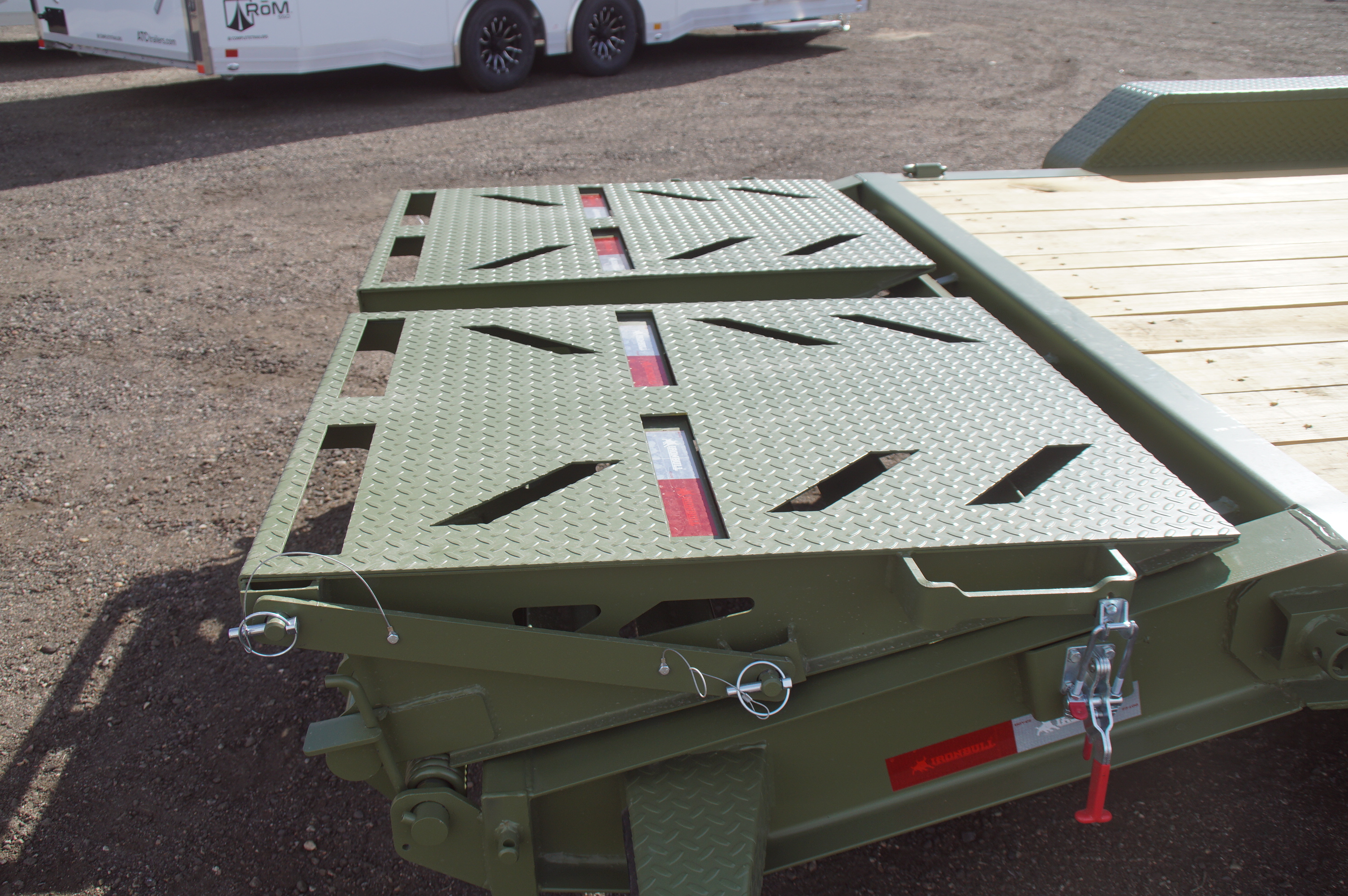 In addition to the monobeam frame construction, this trailer also receives our new supersized full tongue front toolbox as standard equipment and can be equipped with our rampage ramps or 6’ fold up ramps. You will still find several great Iron Bull standards on this trailer such as brake axles and radial tires, powder coat, and USA made LEDs are provided by TecNic lighting. Each EWB trailer also comes equipped with D-Ring tie downs, removable diamond plate fenders, and adjustable coupler. And, as always, these trailers are covered by our industry-best IronClad warranty providing three year structural, two year component and two year free roadside assistance.