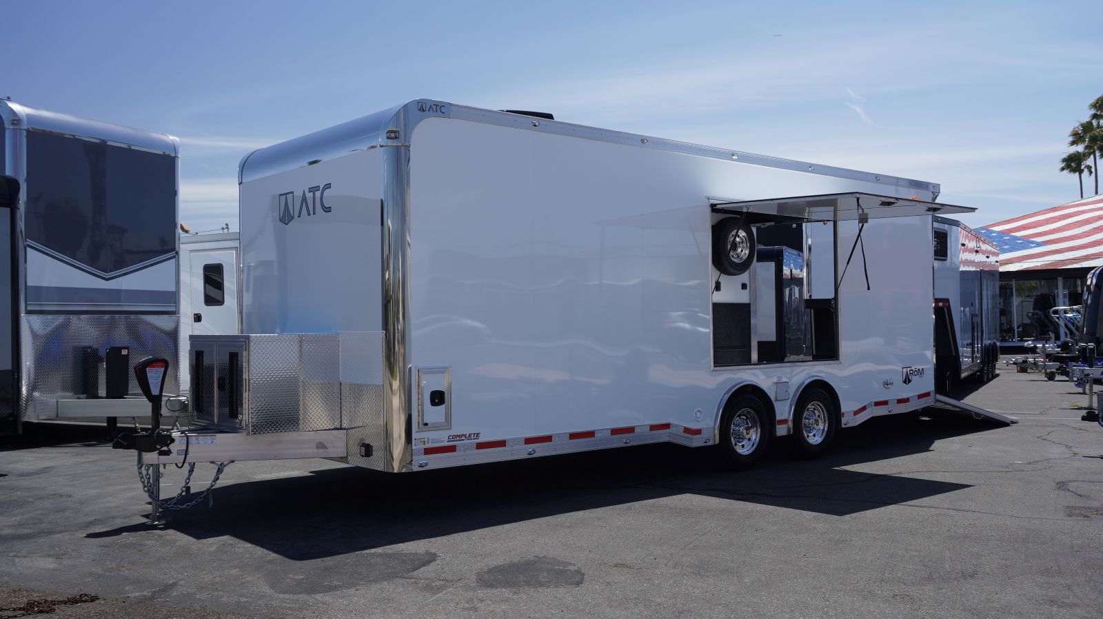 Equipped with an onboard fueling station, fresh water station, and generous cabinet storage, this premium trailer offers unmatched convenience and functionality. Built with ATC’s legendary quality, it’s the perfect solution for transporting wide vehicles with ease.
